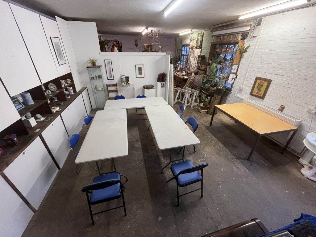 This space is a great location to host a creative workshop, especially one which involves noisy or very messy processes. and can comfortably accommodate up to 8 people, with tables and chairs provided. The Elephant Room can be hired for exhibitions, and can be booked also be booked in conjunction with dm21Gallery.