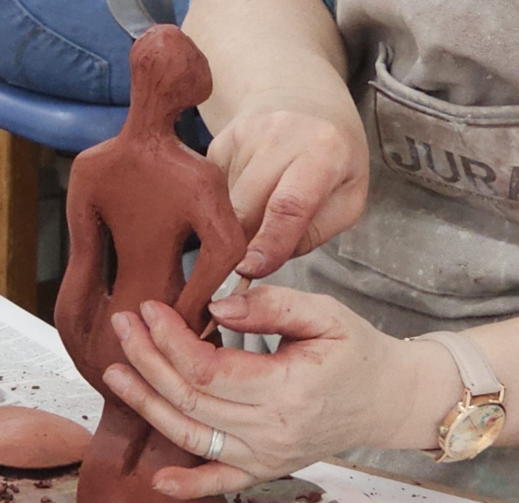 Figurative Sculpture: learn how to sculpt a figure using slab and hand-building methods. Work small exploring pose, form and texture OR work on a larger scale in a longer workshop