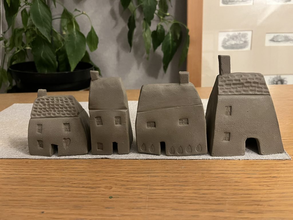 During our day working with clay we’ll be using the technique of slab building to make small houses. This technique is a good way to learn and expand on knowledge of clay. We’ll be mark making and using slips to decorate. Producing pieces that will be fired, glazed and returned to you finished.